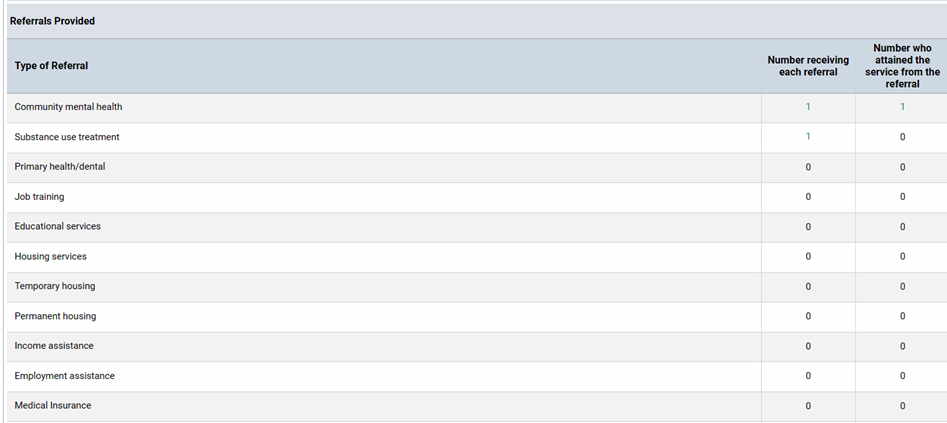 10. Run a PATH report to double check if the referrals added are appearing on the Referrals Provided table.